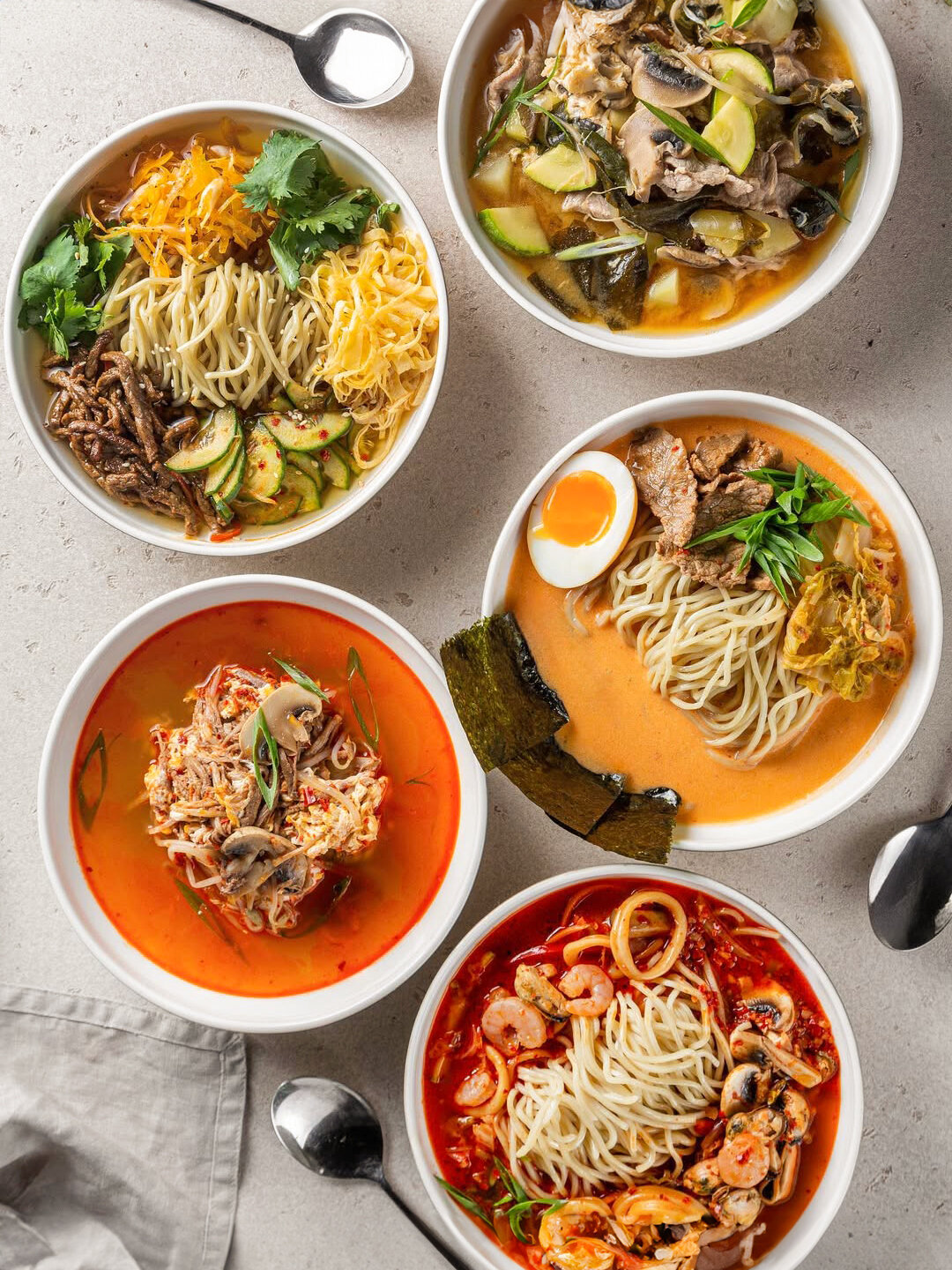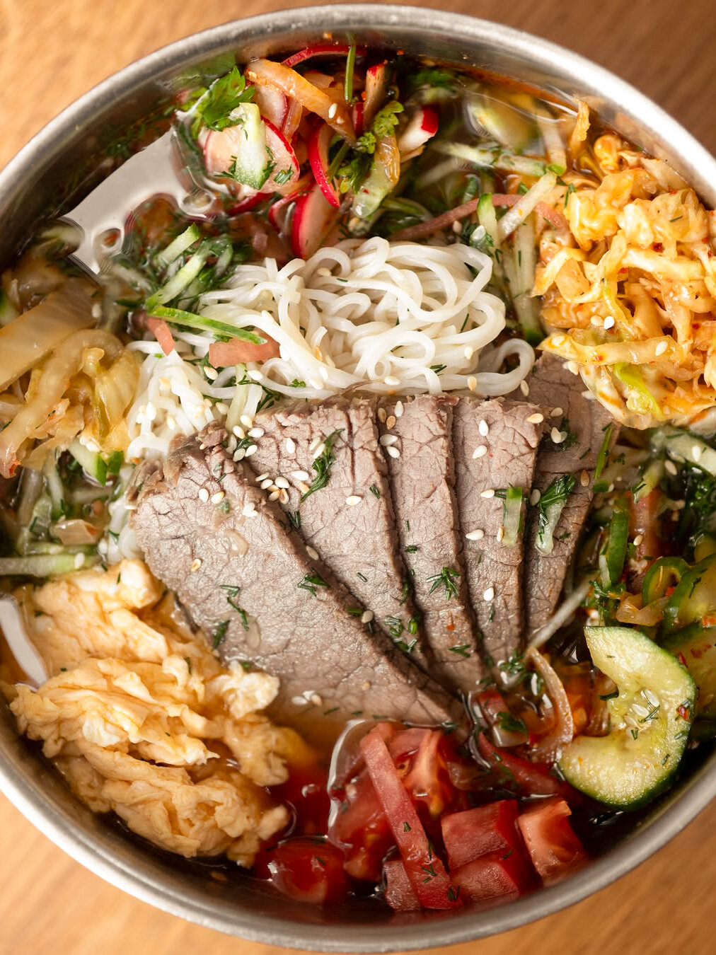И рамен, и корейский рамён — это дальние родственники китайской пшеничной лапши. В период японского колониального правления корейцы переняли саму идею, но не рецепт. Если первый — это многочасовое искусство варки бульона, то рамён — это чаще всего острый, пряный отвар на основе кочуджана, в который опускают культовый фастфуд в виде пакетированной лапши быстрого приготовления. Так и японские суши пришли в Корею и были радикально переосмыслены. В кимпабах — рулете из риса — никогда не будет сырой рыбы, только готовые начинки, включая мясо и овощи, а рис приправляется кунжутным маслом, но не рисовым уксусом.