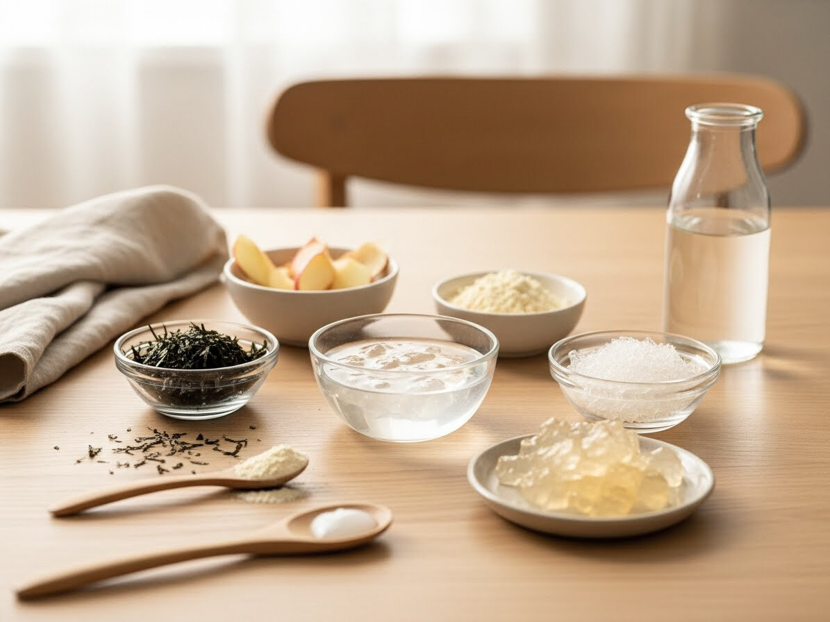 Принципиальная разница между животным желатином и его аналогами — в происхождении сырья. Животное сырьё — это соединительные ткани животных и рыб (кости, хрящи, кожа). Растительные аналоги делают из морских водорослей (агар-агар, каррагинан), фруктов (пектин), семян горохового дерева (гуаровая камедь) и т. д. При этом методы производства сходны: желирующий агент нужно «достать». Желатин извлекают под воздействием кислот либо щелочей, растворяя в горячей воде, затем дегидрируют и очищают.
