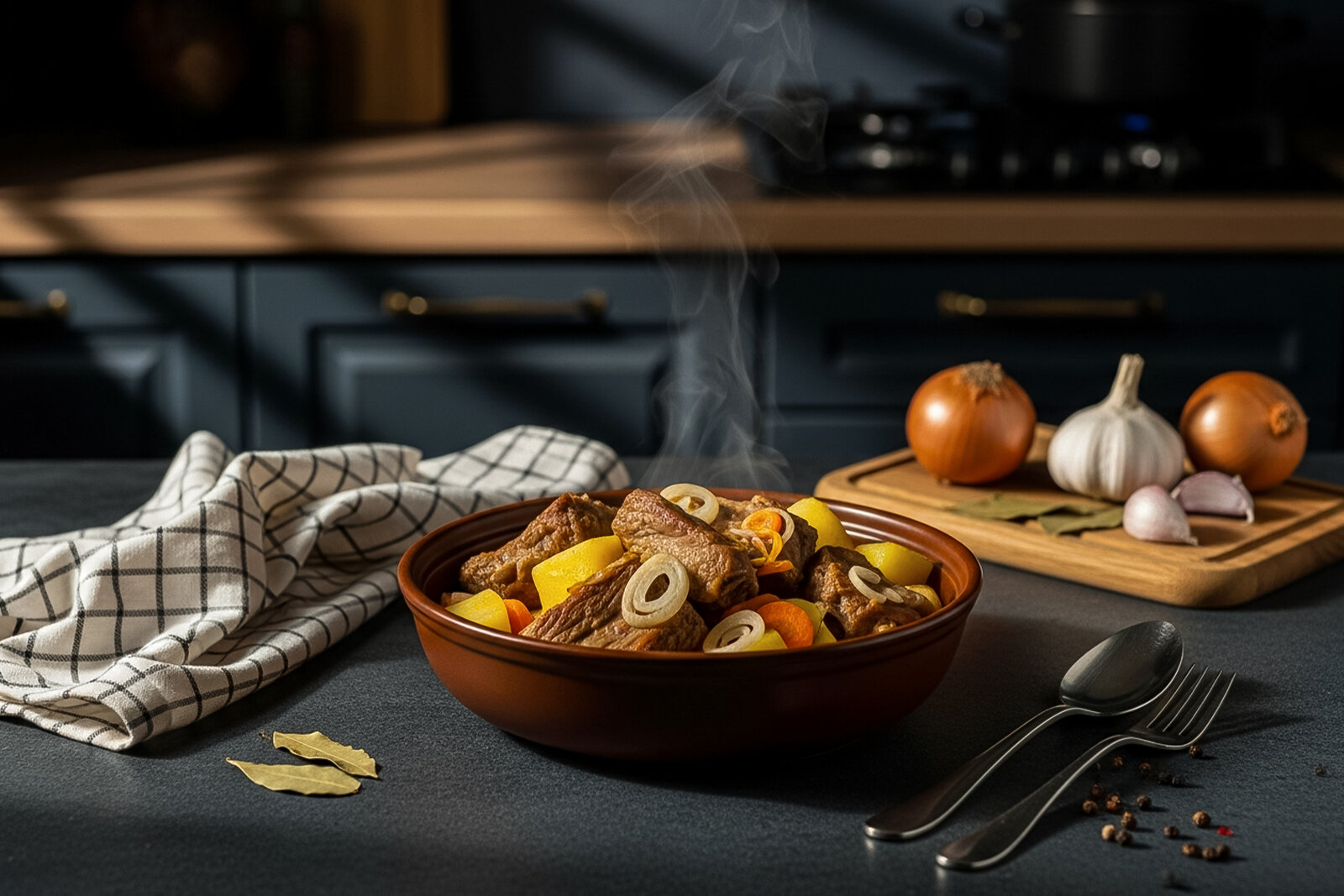 На приготовление рагу из свиных рёбрышек потребуется 2 часа 30 минут.