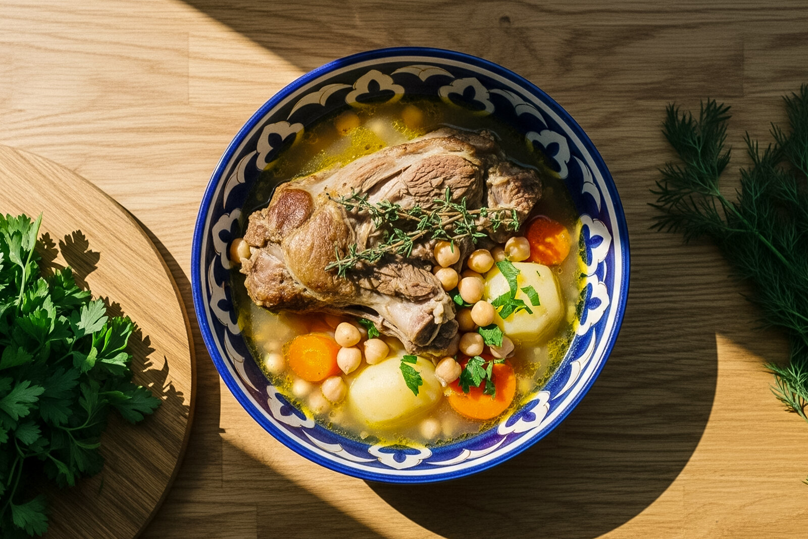На приготовление шурпы из баранины потребуется 12 часов 40 минут (с замачиванием нута).