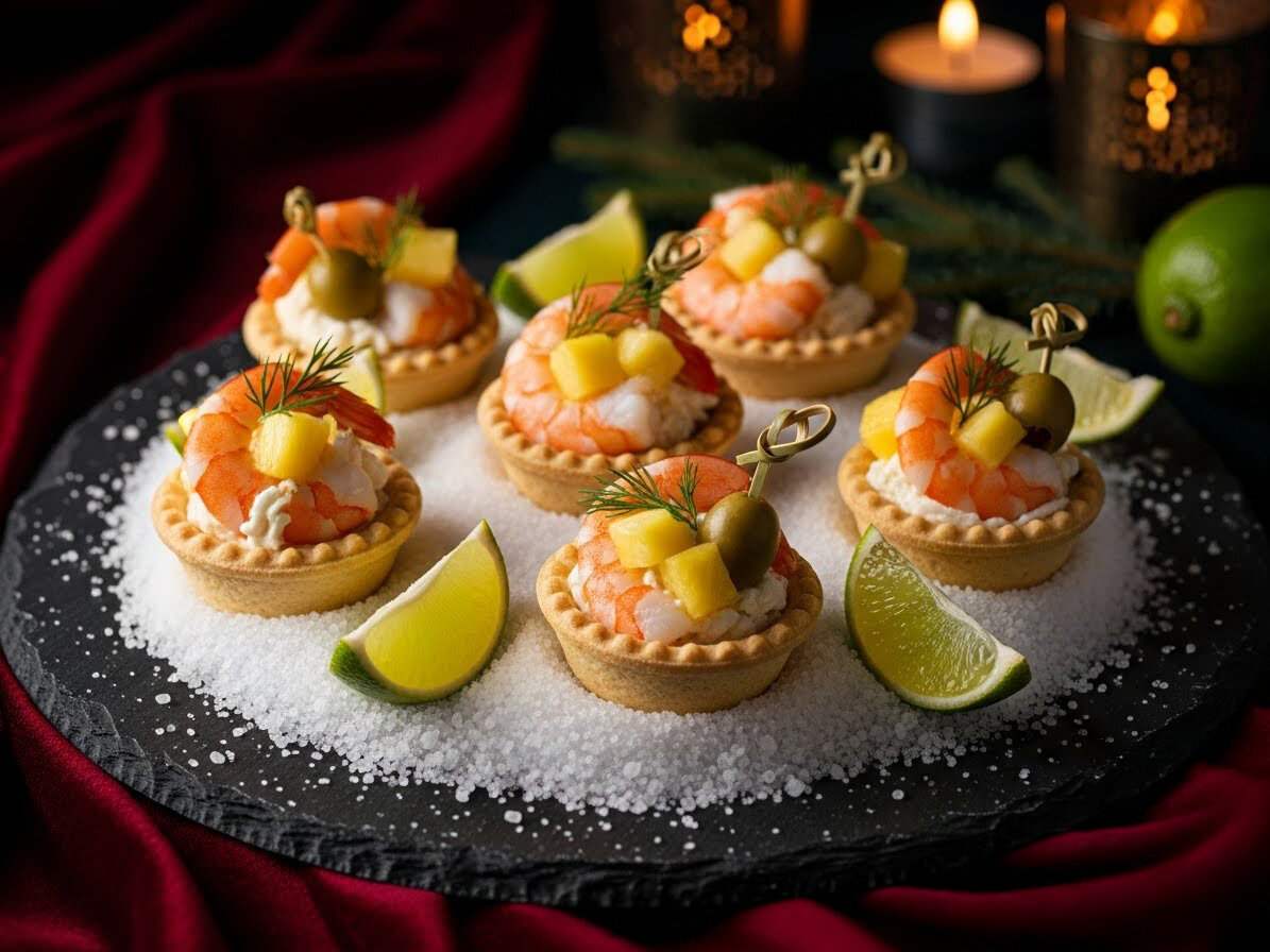 Для эффектной подачи выложите эти тарталетки на «подушку» из крупной морской соли с дольками лайма. Идеально сочетается с розовым вином или имбирным лимонадом.