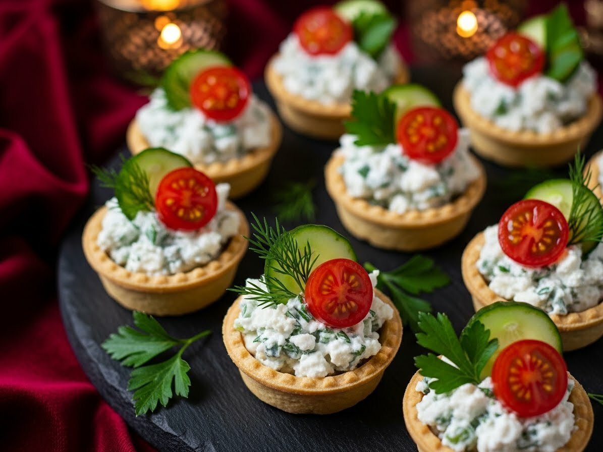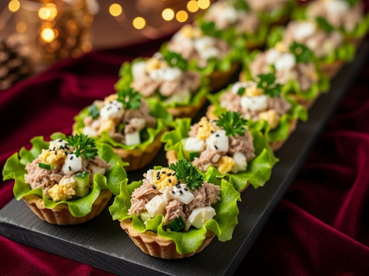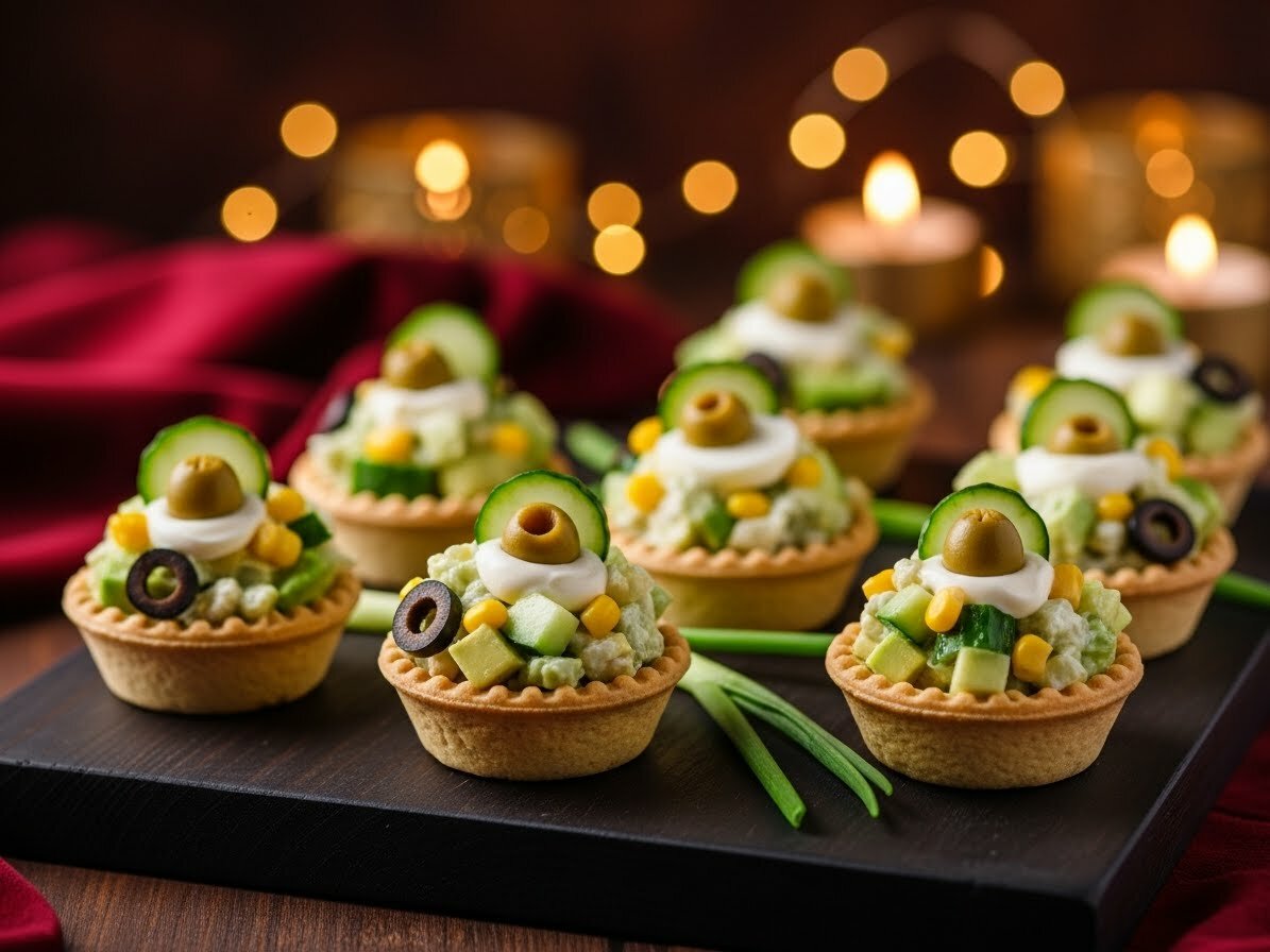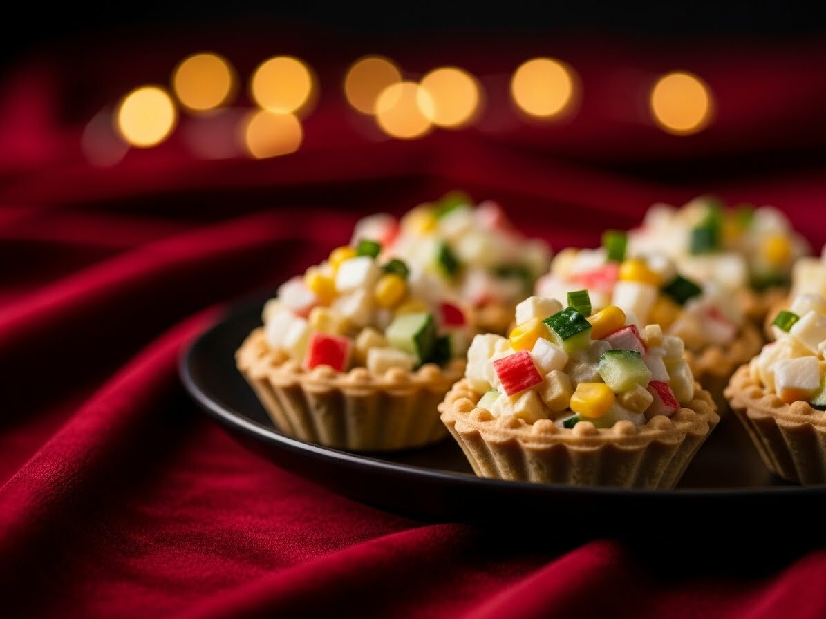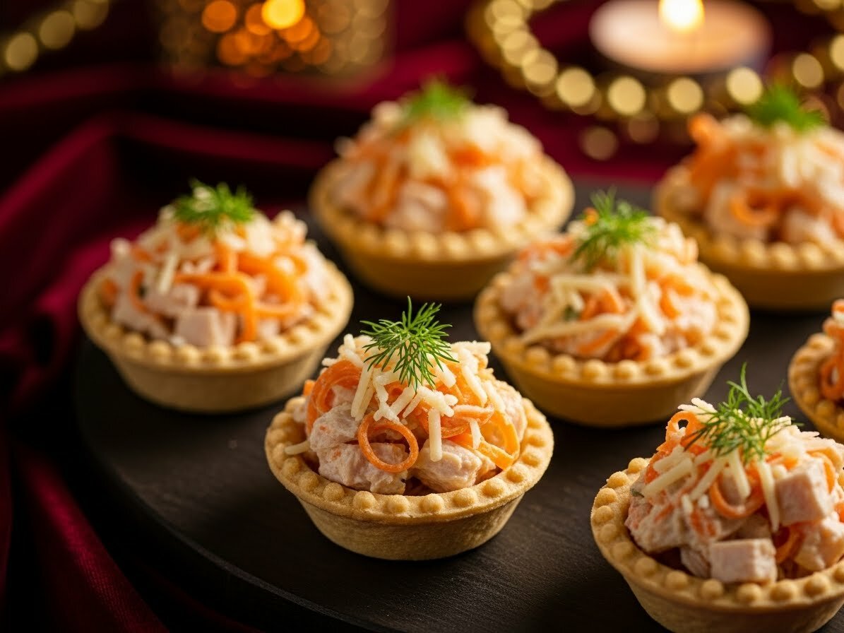 Рассчитать количество тарталеток на гостя легко: ориентируйтесь на общее разнообразие закусок. Если тарталетки — основная закуска, готовьте по 4–5 штук на человека. Если же у вас различные праздничные закуски в ассортименте, то рекомендуем ограничится 2–3 корзиночками на гостя.