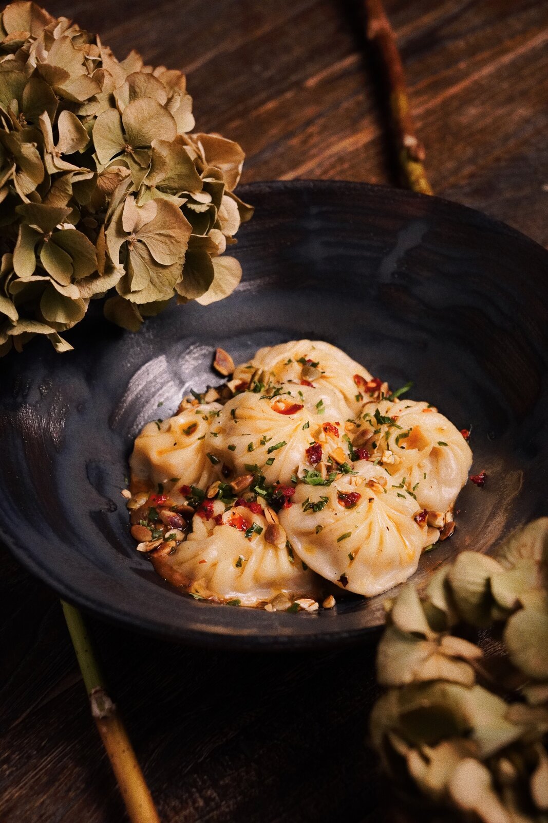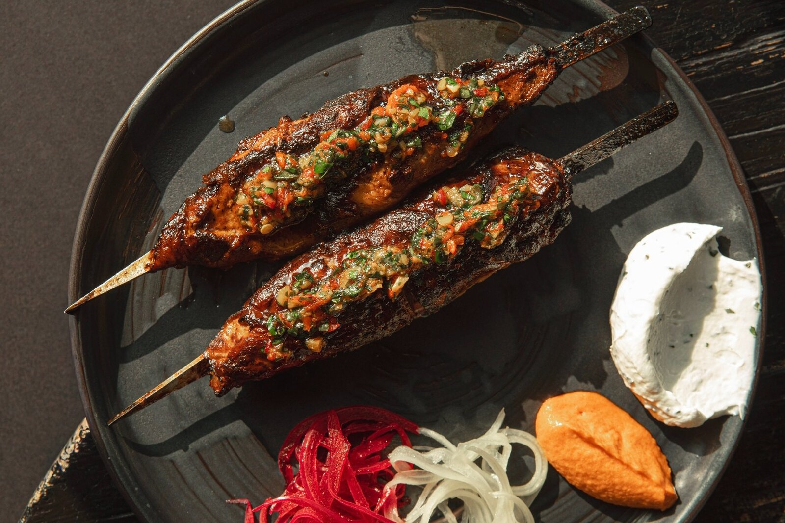 На закуску гостям предложат салат с печёной тыквой и инжиром (950 руб.) и ачичук с вяленой кониной и копчёной паприкой (1200 руб.), а также два вида самсы: с ягнёнком (950 руб.) и с тыквой, бататом и дужсаем (850 руб.). Тартар из конины дополнят лепёшкой из печи (1450 руб), а кебаб приготовят из ягнёнка с маринованным луком (1850 руб.).