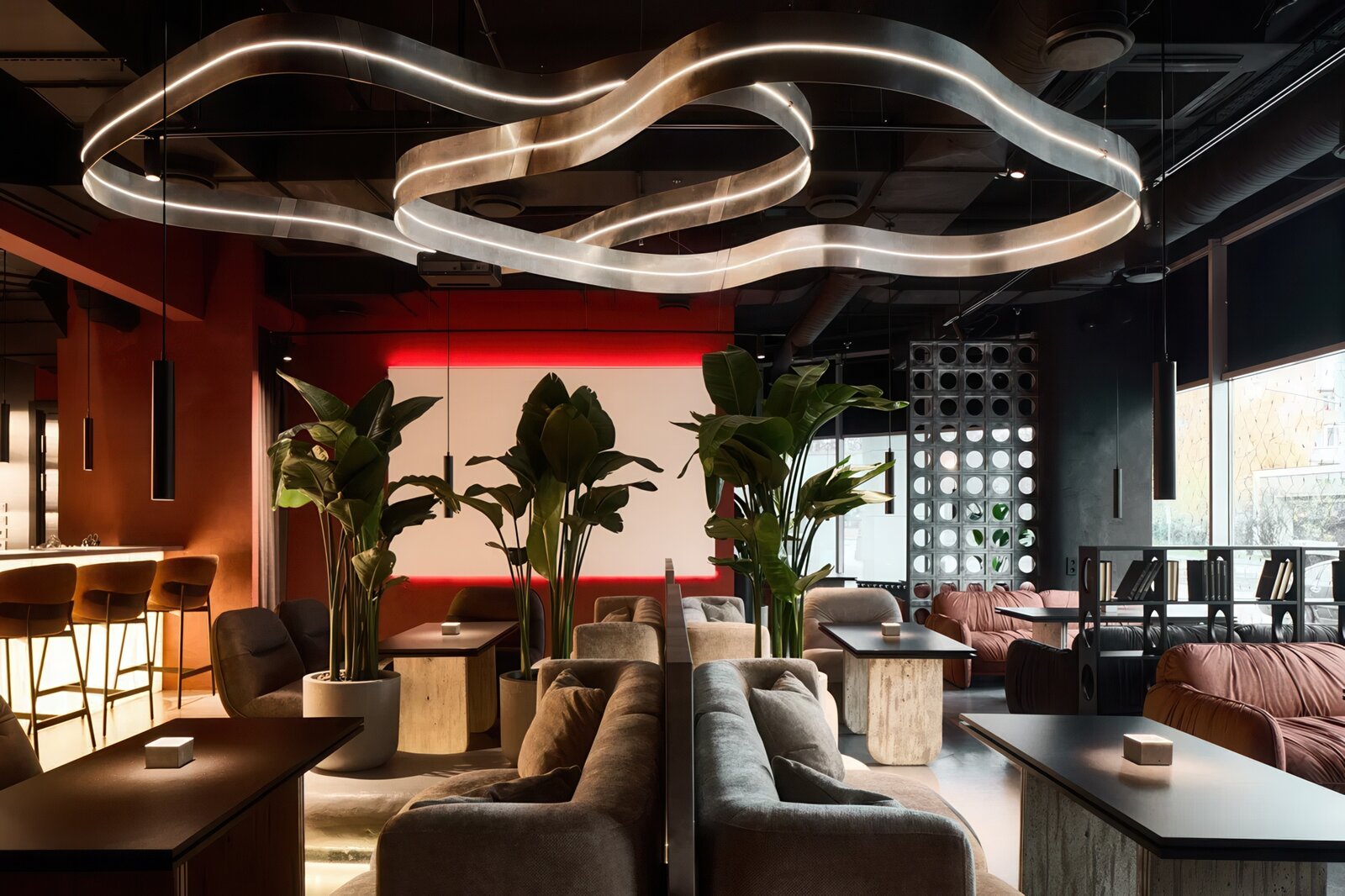 На улице Шаболовка, 10, открылся рестобар «Лаву» с полноценной кухней, коктейлями и авторскими кальянами. В интерьере сочетаются мягкий свет, бархатная мебель, плавные линии и большие живые растения, а также очевидны отсылки к диско 1970-х, но приглушённому и камерному, в оттенках терракота и графита, с металлическим блеском деталей. В авторском меню команда собрала блюда со всех уголков света и дополнила их авторскими акцентами.