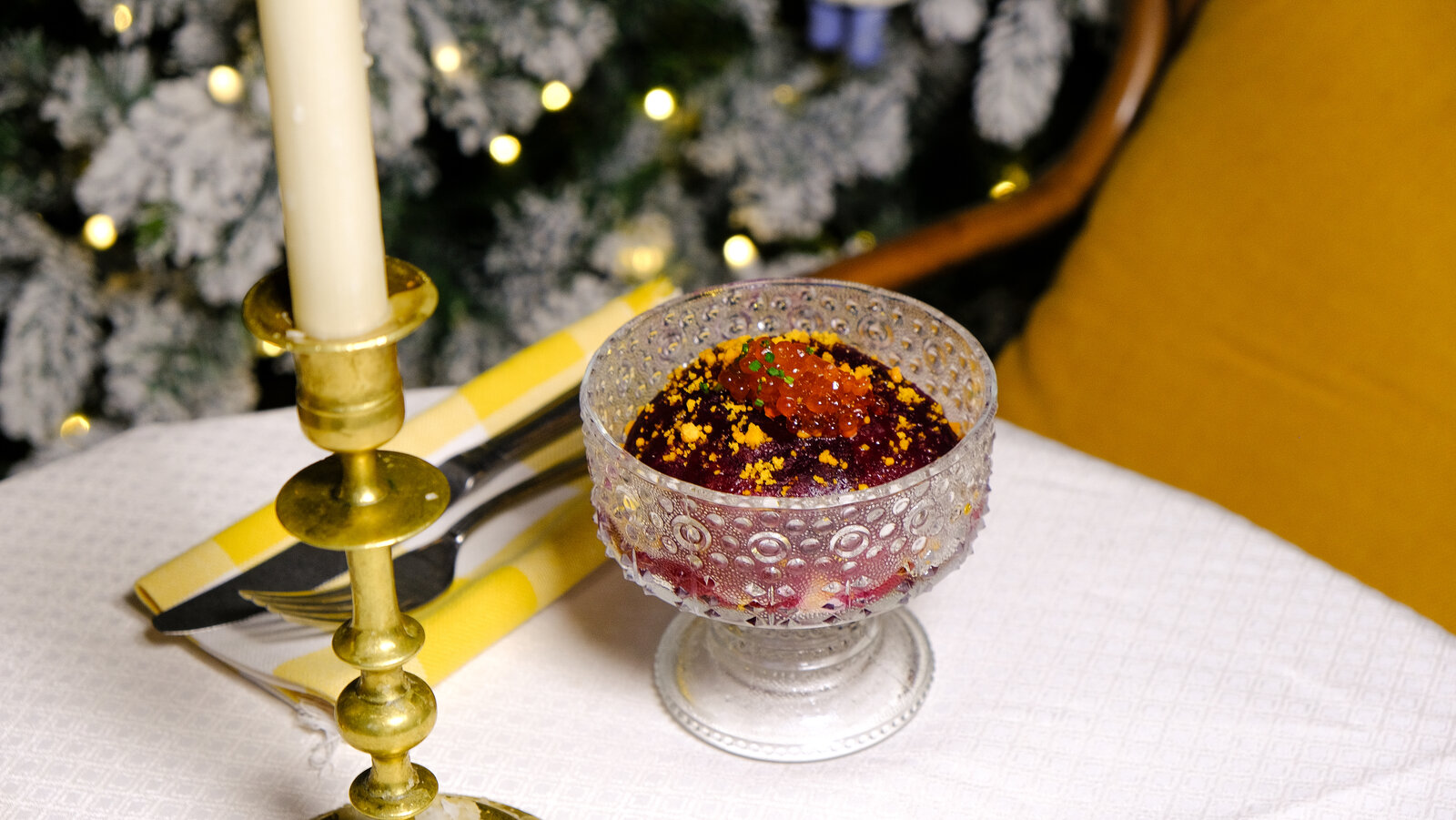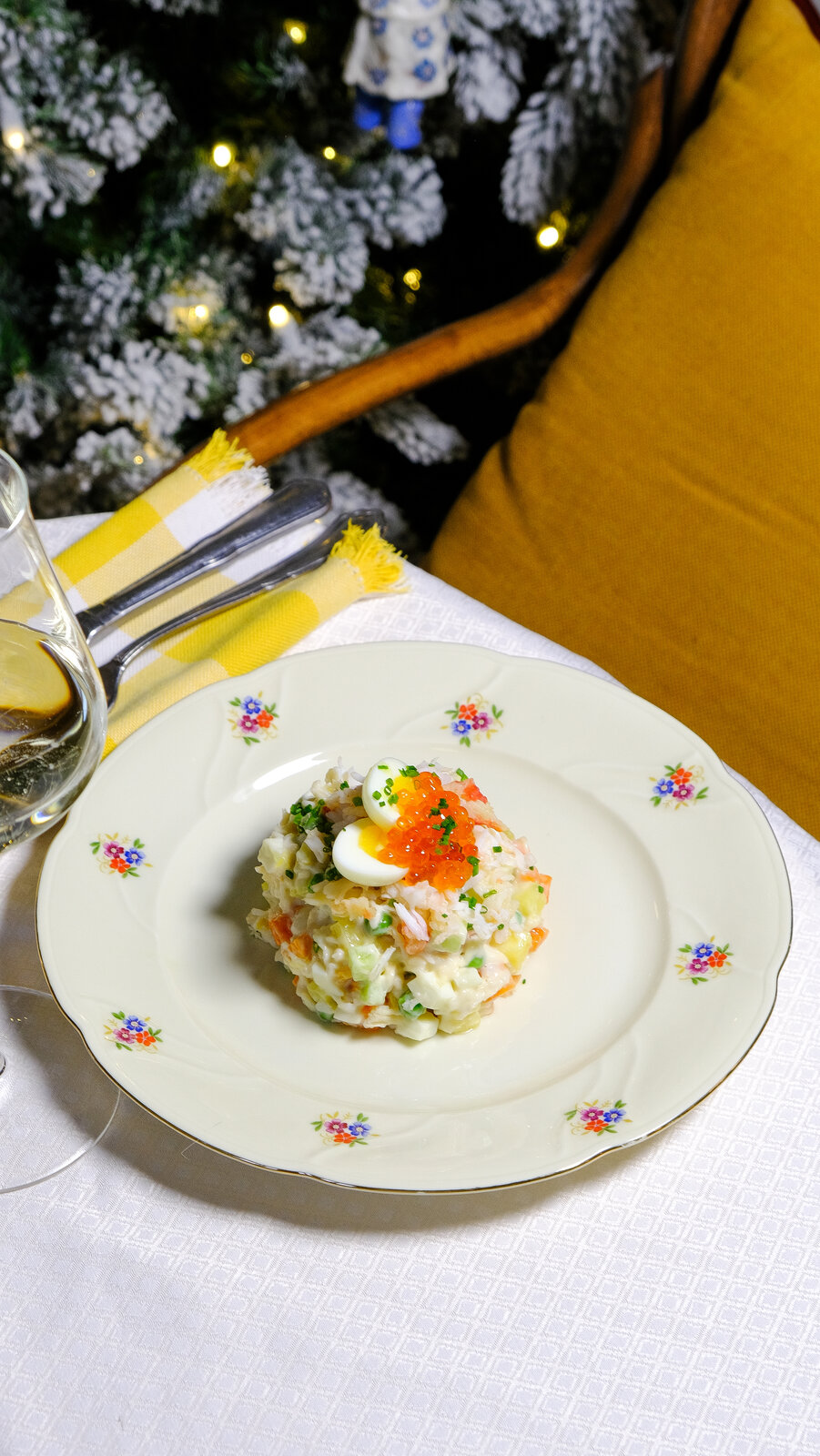 Традиционные блюда, без которых немыслим Новый год, здесь предстают в авторской, праздничной версии. Так, сельдь под шубой (1100 руб.) готовят с запечёнными овощами, домашним майонезом и изысканным дуэтом: икрой лосося и боттаргой. Оливье с камчатским крабом (1200 руб.) состоит из сочного крабового мяса, запечённых овощей, свежих огурцов и перепелиного яйца с красной икрой — всё вместе это даёт знакомый вкус, который будто заново прошёл французскую школу.