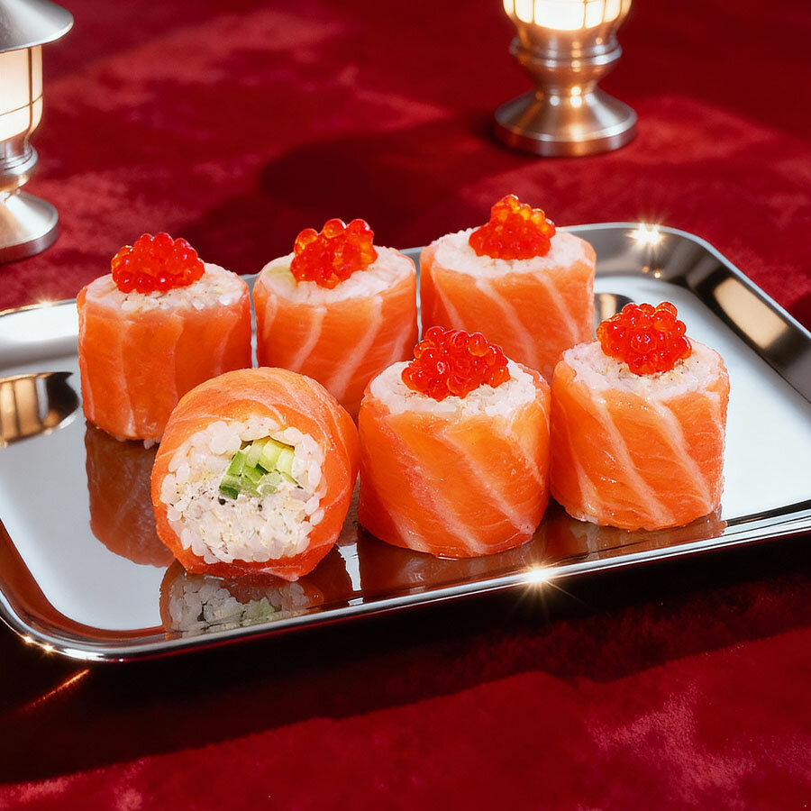 - ролл «Санта» с красной икрой и лососем;