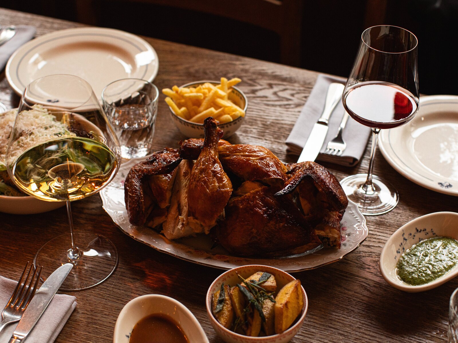 По выходным с 12:00 до 18:00 в ресторане Mamie Bistro на Большой Никитской подают классическое французское блюдо — poulet rôti шеф-повара Тараса Кириенко.