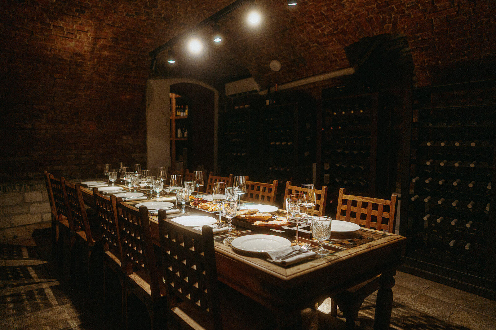 Старинный погреб, в котором до реставрации дома Долгоруковых (часть которого занимает ресторан) хранилась аптечная утварь, команда грузинского ресторана очистила, привела в порядок и использовала как зал. Сейчас же в Bagebi ему придумали новое функциональное значение: вдоль стен погреба стоят шкафы с вином, а раз в неделю сомелье ресторана проводят там же винные дегустации.