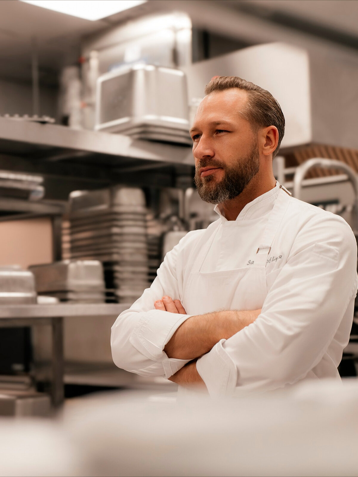 Когда-то я пришёл устраиваться старшим помощником бармена, и меня не взяли со словами: «Сейчас увольняют поваров. Возможно, вы в этом себя найдёте». Так началась моя карьера. Спустя время этот случайный выбор привёл меня в White Rabbit, а позже — к предложению принять участие в открытии крупнейшего казино в Восточной Европе (рестораны Brunello и «Баффет» открылись в «Казино Сочи» игорной зоны «Красная Поляна» в 2017 году. — «Открытая кухня»). Мы тогда пожали друг другу руки и с тех пор работаем вместе уже восемь лет.