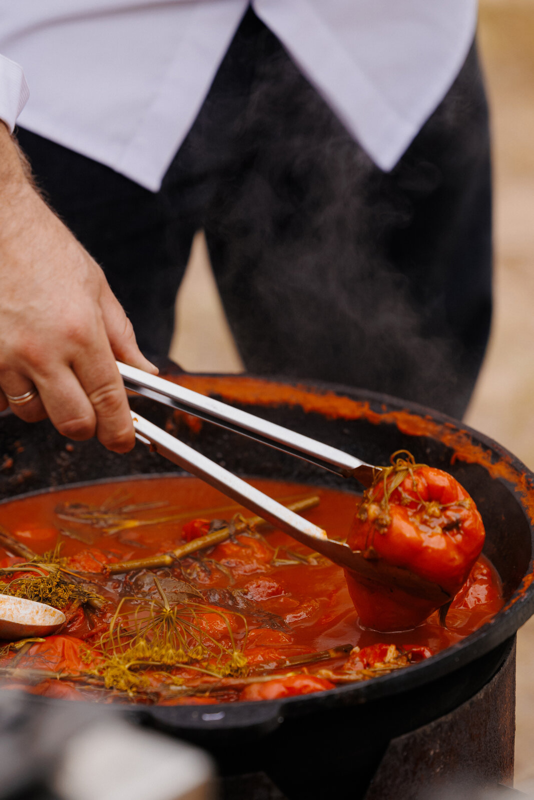 В моей памяти навсегда остались домашние мясные котлеты. К ним мама и бабушка обязательно готовили картофельное пюре и подавали солёные огурцы. А фирменным блюдом деда были потрясающие перцы. Самое вкусное — это густой кисло-сладкий соус из томатов. Сейчас уже я сам готовлю их для своей семьи и гостей. В сезон их можно попробовать и «На Даче».