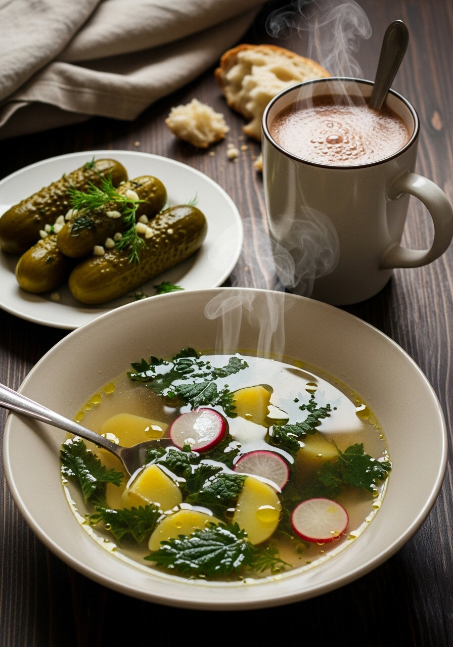 Среди всего деревенского изобилия я больше всего любил бабушкины солёные огурцы с горячим какао, сваренным на свежем козьем молоке. Обожал ходить за грибами, но сам почему-то никогда их не ел. Помню и жареную картошку с соленьями или свежим салатом. Эти впечатления навсегда привили мне любовь к простой русской кухне. Но одно блюдо имело символическое значение, потому запомнилось особенно.