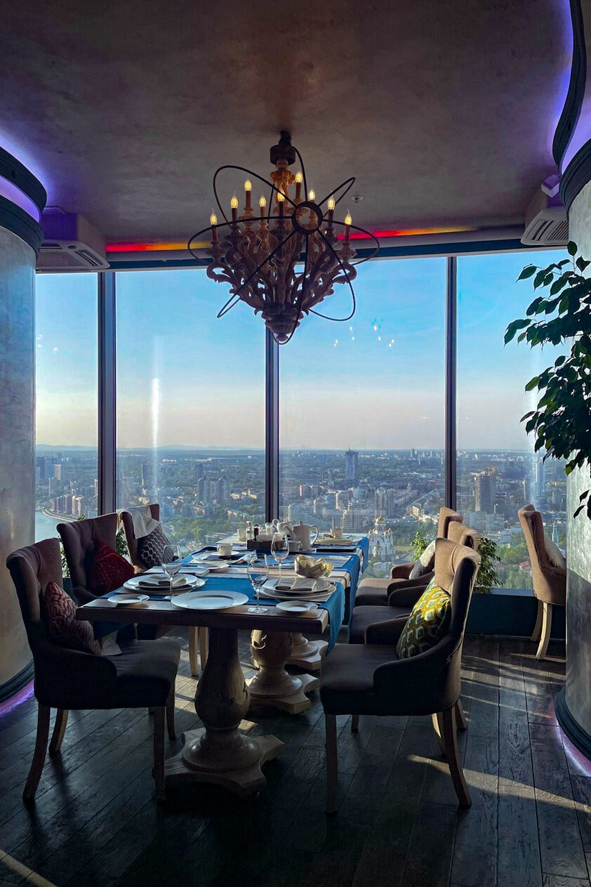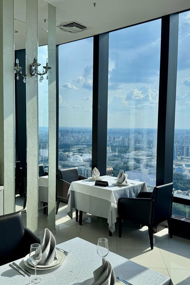 Ещё выше — на 51-м этаже «Высоцкого» — тоже находится ресторан с панорамным видом на Екатеринбург, который идеально подходит для романтического вечера. Здесь готовят блюда русской и европейской кухни, также есть возможность выбрать морепродукты из аквариума. По вечерам со среды по субботу звучит живая музыка.