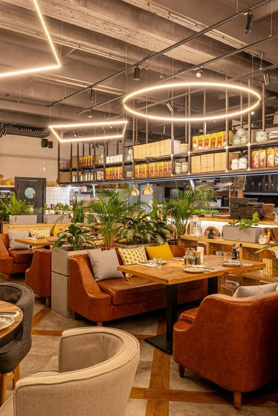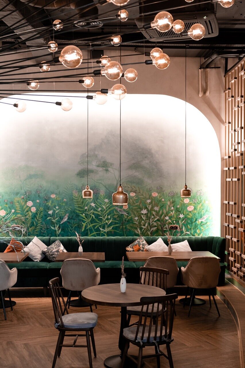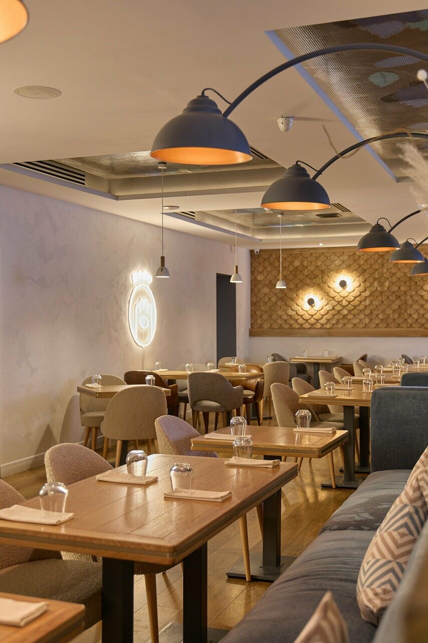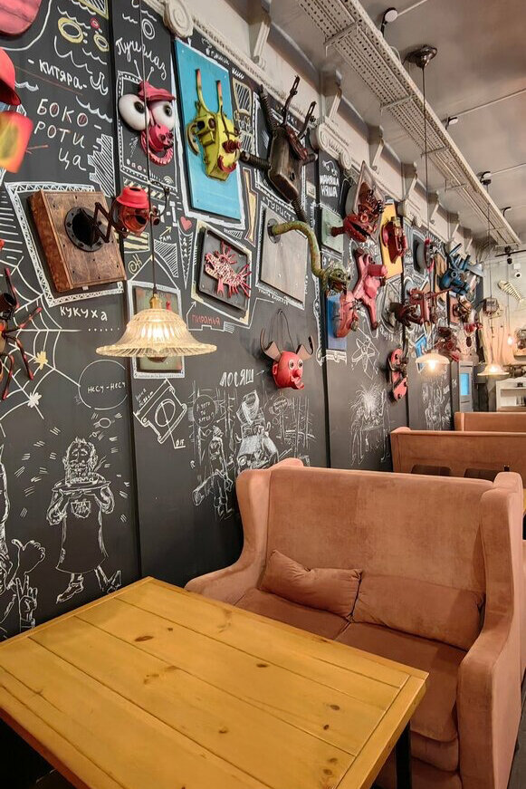 В интерактивном бистро в центре города интерьер оформили в современном стиле с деревянными столами и мягким светом. Фишкой заведения стала открытая кухня и возможность добавить свои блюда в меню. Настоятельно рекомендуем попробовать фирменный «Горожанский чаудер» с тунцом конфи, ризотто с лисичками и котлеты из щуки. Детям можно заказать маленькие порции основных блюд или что-то из специальных позиций: они точно оценят блинчики с вареньем и весёлые сырники.