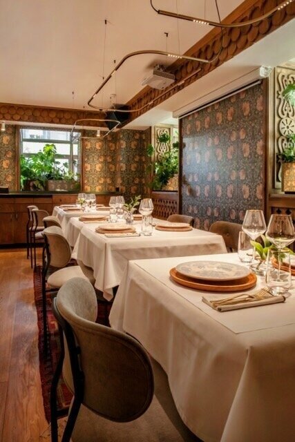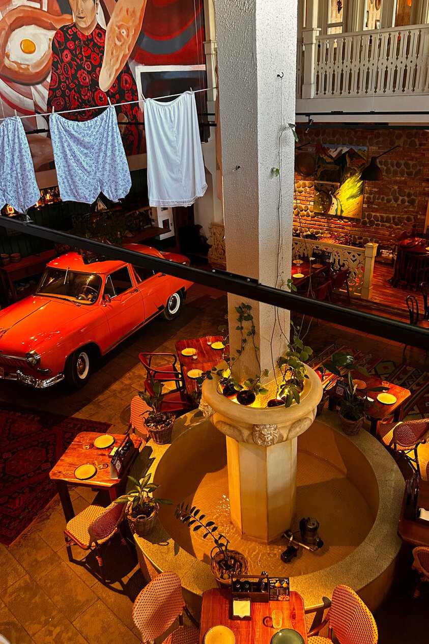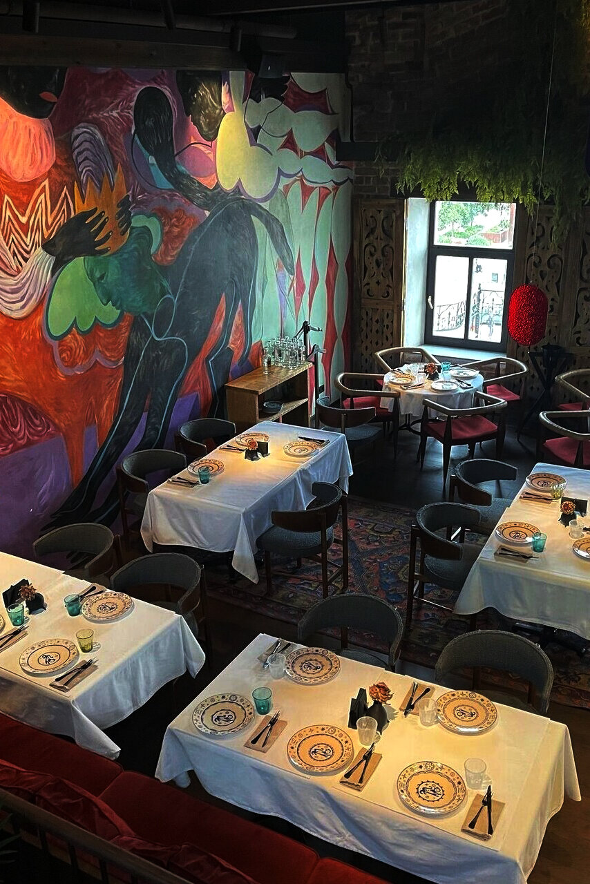 В ещё одном старинном особняке расположился ресторан грузинской кухни, где готовят традиционные блюда в современной интерпретации. Визитной карточкой здесь стали хинкали с трюфельным маслом и нежнейшее чанахи из ягнёнка. Рекомендуем не проходить мимо аджапсандала — овощного рагу, которое готовят по старинному рецепту. Винная карта включает лучшие сорта из Кахетии. В интерьере замиксовали атмосферу грузинского дворика и городского лофта с винтажными коврами. По вечерам на традиционных инструментах играют живую музыку.