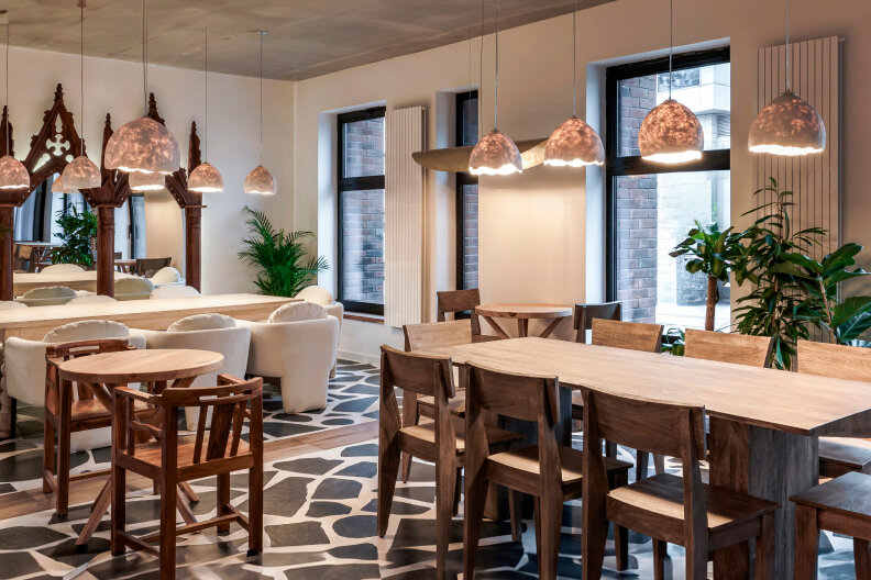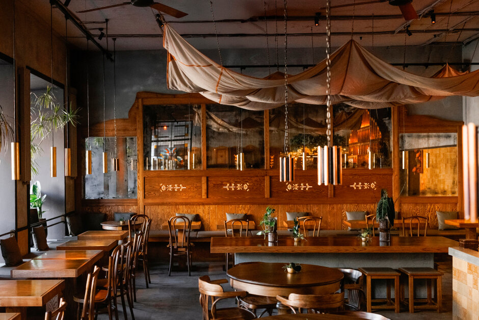 Нижегородская Шри-Ланка раздвигает границы: координаты те же, но тропический ресторан на Покровке стал больше и расширил меню, обновив в том числе ланчи и бранчи. Цветные витражи, secret garden во дворе и хиты в меню, хвала Будде, на месте: наан, роти и карри — от чечевичного до японского. При этом гастротур по «Цейлону» теперь может стать по-настоящему гурманским: на старт берите бао-багет с куркумой и взбитым арахисовым маслом, под вино (поделено в карте на колкие и медитативные) — томаты кимчи с муссом из феты, на дижестив — коктейли: с хересом на чёрном перце, джином и ромом на карри.