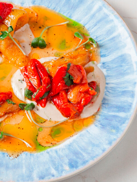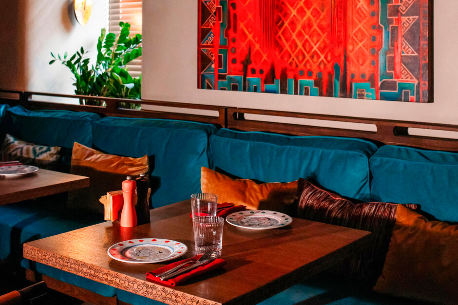 Со столичным размахом до турецкого базара, а то и в султанские покои домчит ближневосточный ресторан на Рождественской. Очаровательные тётушки-ханум раскатывают тесто для гёзлеме прямо при гостях, на мраморе растут пирамидки сластей и хлебов, мясо на сверкающей витрине ждёт отправки в печь: она пышет огнём тут же в зале. В меню фатуш, харира и халва, россыпи мезе, пиде, шашлыков и кебабов: фирменный дурум — из ягнёнка с баклажанами в лаваше. Кофе из турки, вино из Фракии, картины, подушки, бахрома с кисточками как у балдахина: остаётся как из лампы Аладдина вытащить ещё диковинку — целую коллекцию «Кровавых Мэри» с розой, том ямом или клубникой.