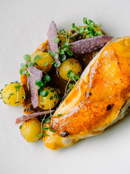 Утка осеннего нагула, кетчуп из яблок и сидра, хохлома-гимлет, дистиллят-самогрей, груша-дичка на дубовой щепе. Yale заслуженно стал одним из гастросимволов Нижнего Новгорода — даже просто полистав меню, понимаешь: это новая веха в истории локальных ресторанов русской кухни. Подают солянку с почками кролика и маринованными ветлужскими огурцами, чебуреки с кабаном и котлету из щуки с соусом из раков. Наливают еловый лимончелло, волжский квасок (локальный парафраз на беллини) и шампань из необъятной винной карты. Всё это под исторической лепниной и райскими птицами на потолке: про усадьбу XIX века записали аудиогид, а фрески перенесли на шёлковые платки и зонты.