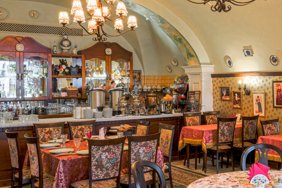 «Наш „Пяткин“ — старожил, сибарит и бонвиван» — так могли бы представлять с порога ресторан-гастроскрепу города N. Меню чин по чину отпечатано с ятями и ерами: студни и соленья, отдельный «икорный параграфъ», в ржаных горшочках — «кокиль из грибов», потрошки и почки, и это мы ещё до горячего не дошли. А там щи суточные, пельмени самолепные, котлеты пожарские, караси озёрные да барашек «лумтиками в рагуте на шкворчащей сковороде» — лепота! За окном — суетная жизнь Рождественской, внутри — мёд и услада: расписные своды и уютный цветастый текстиль, чай из самовара с крендельками и смородный спотыкач в лафитнике: недаром мимо не проходит ни турист, ни местный.