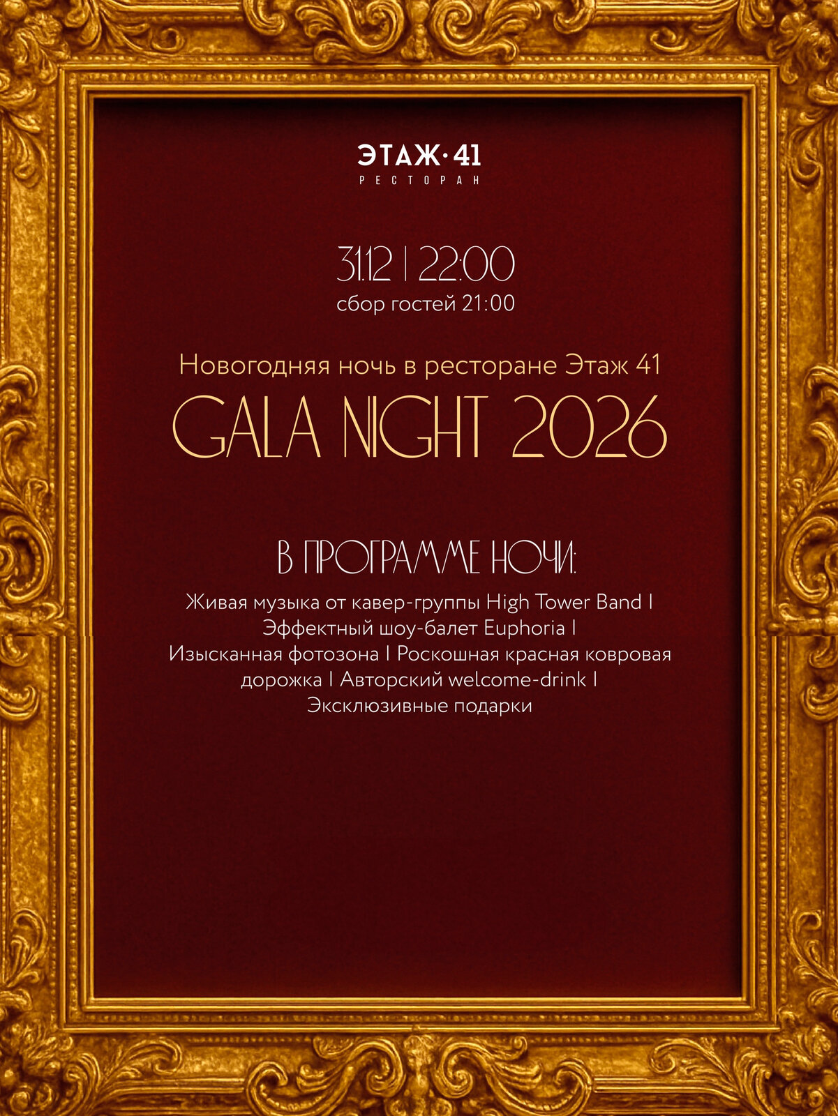 В программе Gala Night 2026 панорамного ресторана запланированы ведущий, живая музыка от кавер-группы High Tower Band и завораживающая хореография от шоу-балета Euphoria. А ещё розыгрыш подарков, красная дорожка и звёздный фотограф — позируйте, как на премии «Муз-ТВ»! Ну и куда без поздравления от Деда Мороза и Снегурочки и развлекательной программы для детей. Всё это с потрясающим видом на город и фейерверки с высоты 150 метров.