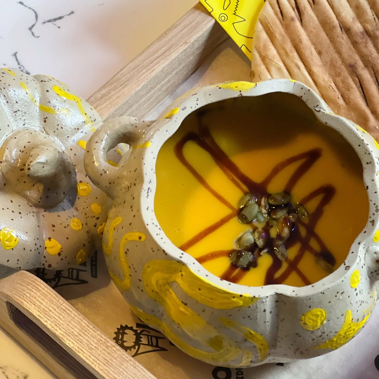 Проект непроизвольно вызывает улыбку умиления: тут подают рыбок из мягкого теста и онигири — треугольные сэндвичи из риса с нарисованными глазами и улыбками. Рецепту рыбки тайяки уже больше 100 лет, её впервые испекли в 1909 году со сладкой бобовой пастой адзуки в токийской кондитерской Naniwaya Sōhonten. Тут же получилось целое меню с интернациональными и в том числе сытными начинками по единой цене 220 рублей: с курицей в сливках, салями и горячим сыром, бататом, чеддером и тархуном и заварным кремом из матти. Поговаривают, что те самые легендарные тайяки цубуан с бобами не отличают от японских даже сами японцы.