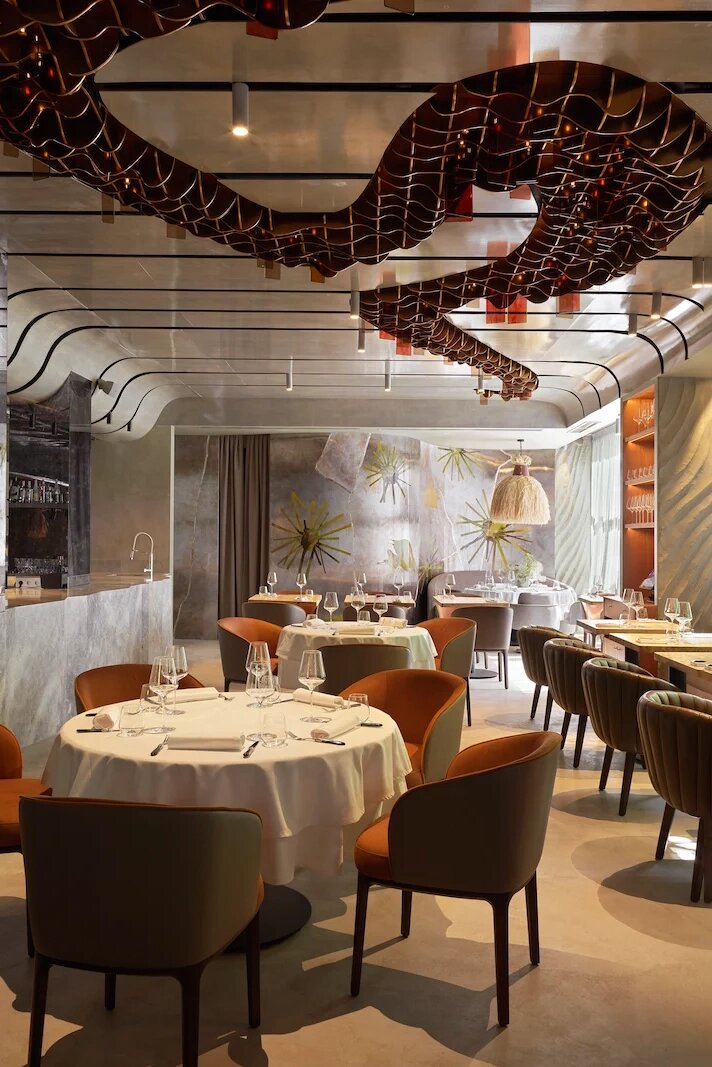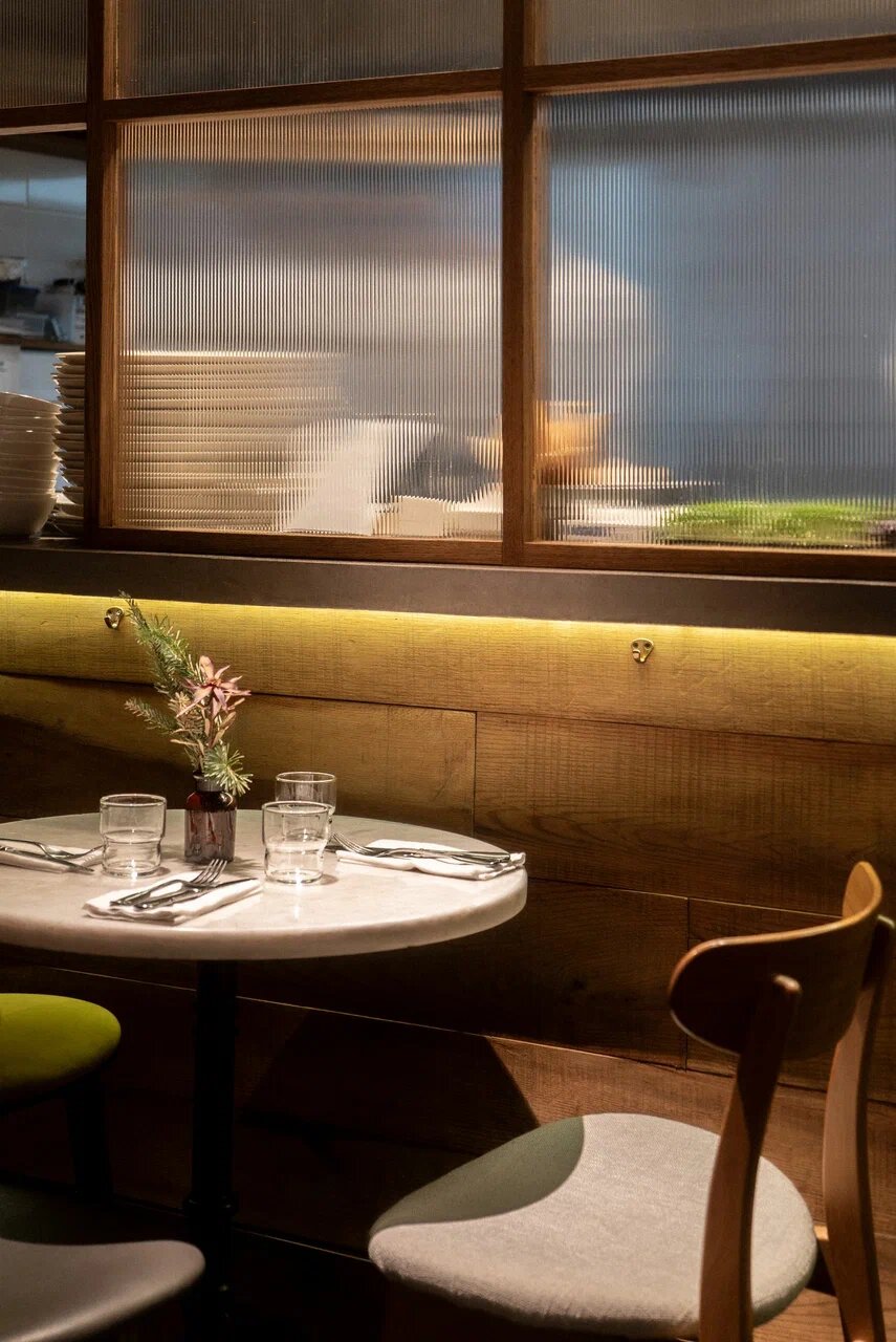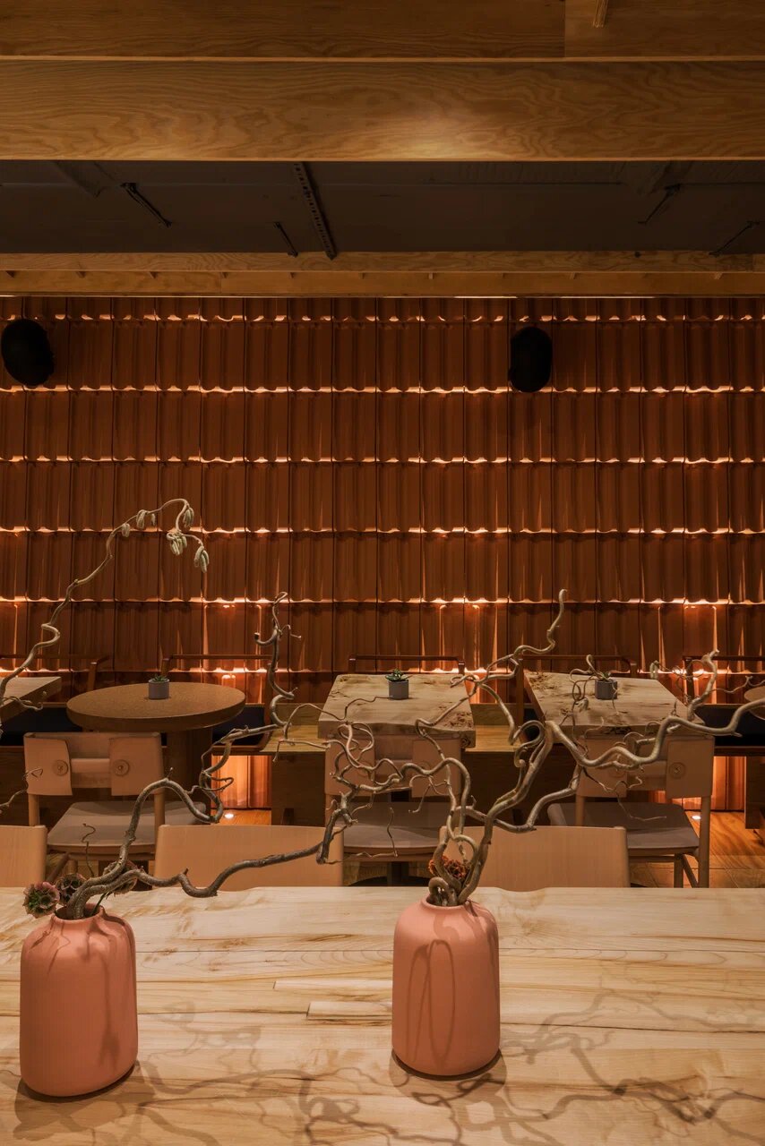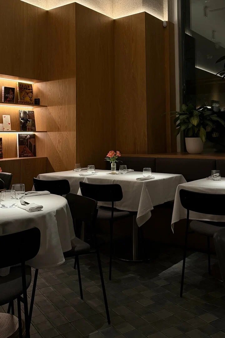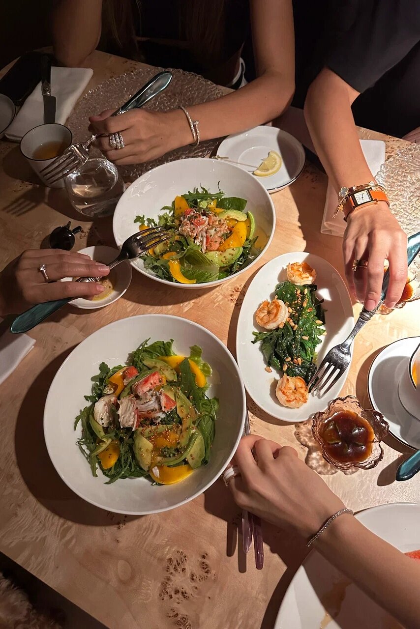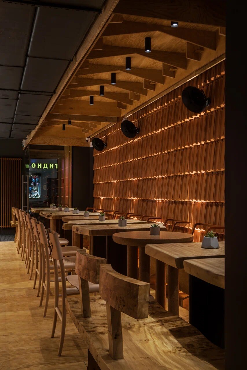 На выбор блюда из основного, ночного и меню завтраков. Последние стартуют аж в 4 утра. В барной карте — коллекция саке, японского алкоголя и коктейли в минималистичной эстетике Страны восходящего солнца.