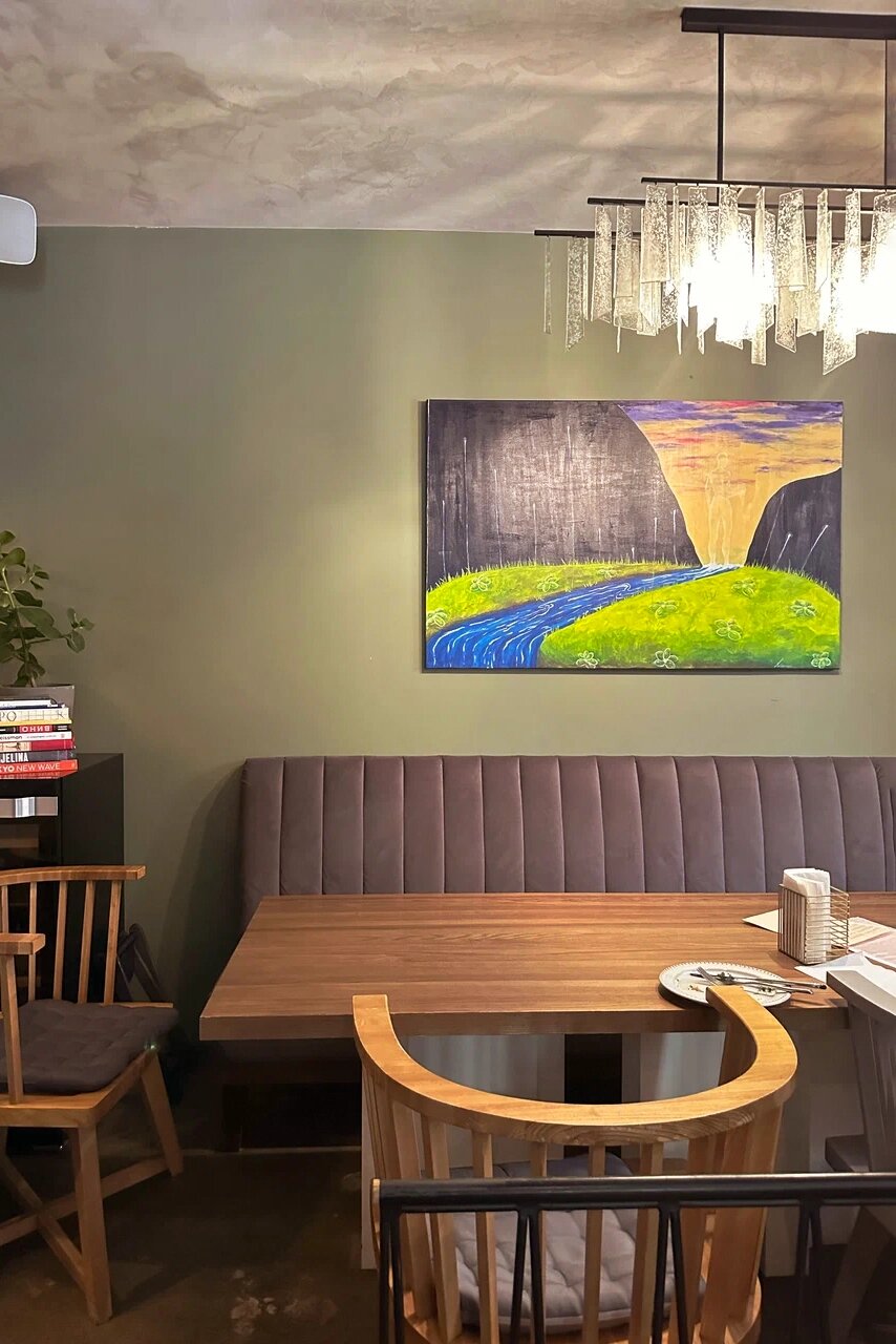 Верно считанная атмосфера, типичная для кафешек в тусовочном районе Тель-Авива, аккуратно перенесена в столицу России и масштабирована в сеть. Притягательно потрёпанное кафе израильской кухни с европейскими вкраплениями действительно может похвастаться свойской, приветливой и дружелюбной обстановкой и, скажем по-простому, вкусной едой.
