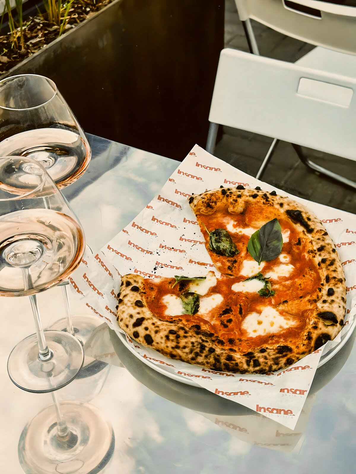 Ещё пара любопытных вариантов: пицца с чоризо, горгонзолой, мостардой из инжира и пометкой «здесь и сейчас или никогда» (сезон инжира не вечен) или сочетание креветки, кальмара, чоризо и халапеньо — в стиле surf-and-turf да с огоньком. Пиццу в Insane полагается резать ножницами и сочетать с белорусским крафтом — процесс почти ритуальный.