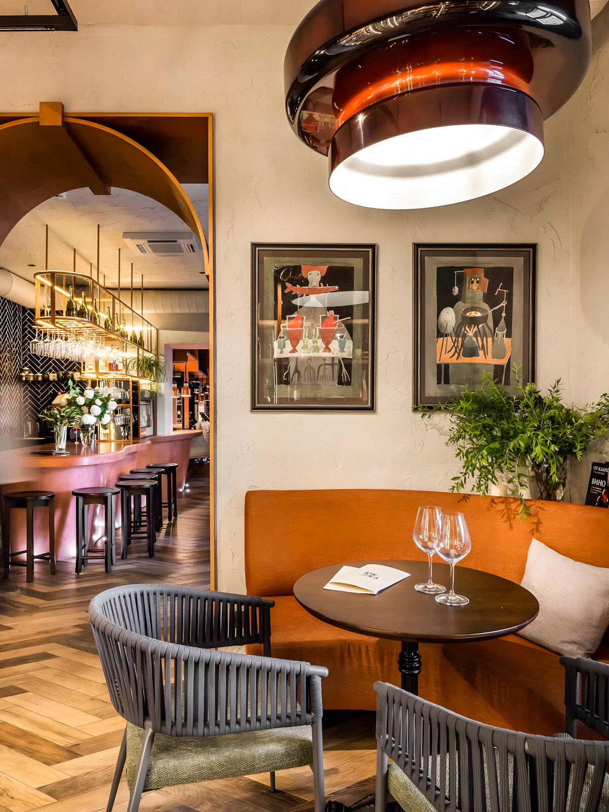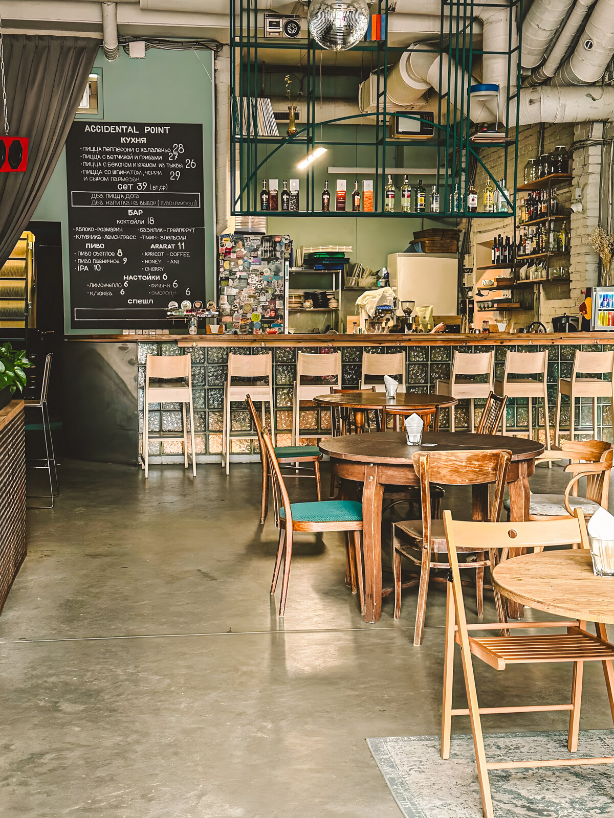 Попробуем что-нибудь интересное: как вам пепперони с луковым мармеладом, прошутто ди парма с черносливом, груша и бекон, ветчина с сырным соусом и ананасом-гриль? Место так и намекает на бокал в руке: в коллекции — более 80 вин, в афише — регулярные дегустации с лекциями (например, про вулканические вина Сицилии или новосветские вина, которые спорят с традицией).
