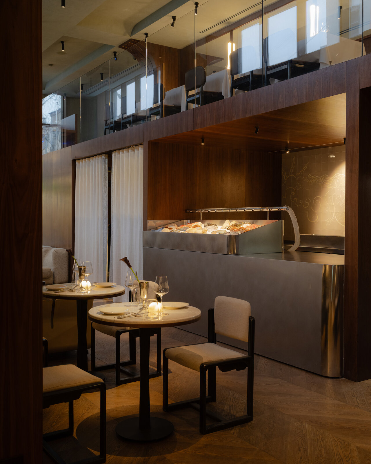 За кухню, как и в Soma и Bille, здесь отвечает Артём Чудненко и всячески экспериментирует преимущественно с рыбой и морепродуктами, как и полагается в морском ресторане. На первом этаже уже появился большой «ледник», поэтому убедиться в разнообразии и свежести можно воочию.